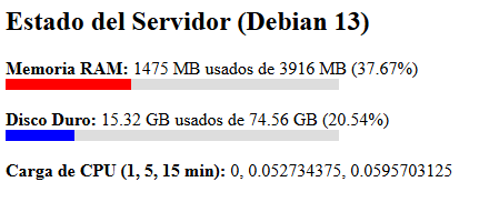 Suempresa.com: 600 pesos mensuales pagando tres años por anticipado, más IVA por 4 GB de RAM y 80 de disco duro. Por 800 más IVA mensuales, y solo AlmaLinux. Lo descarto porque es mejor pagar mes por mes por si cambia la calidad y porque requiero Debian 13.